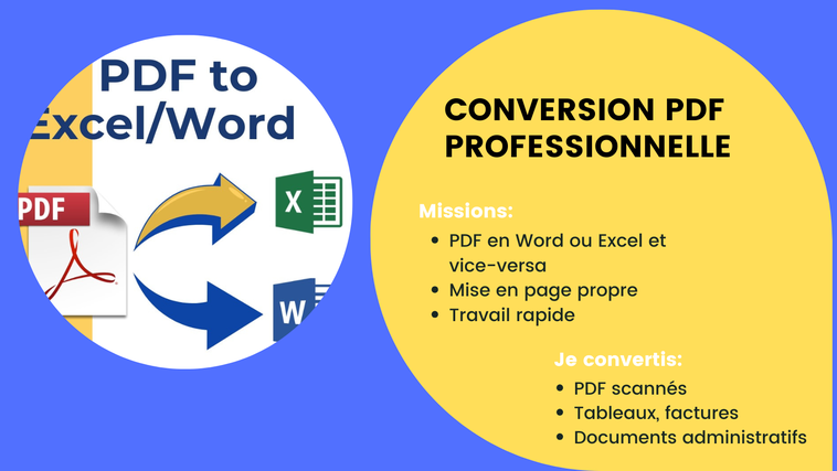 Je vous propose un service rapide, précis et professionnel pour convertir vos fichiers PDF en Word ou Excel tout en respectant la mise en page originale.