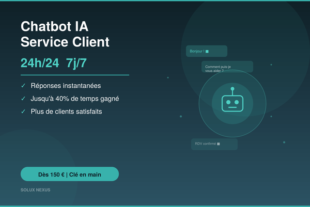 Exemple concret : Un e-commerçant qui reçoit 50 demandes/jour en traite 30 automatiquement grâce au chatbot. Ça représente environ 2h gagnées par jour, soit plus de 40h par mois.