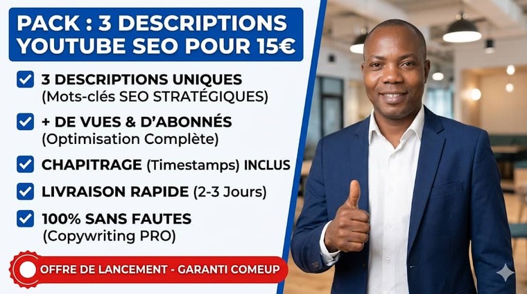 Une vidéo de qualité sans une stratégie SEO reste invisible. J'utilise mon expertise pour rédiger des descriptions qui parlent à la fois à vos spectateurs et à l'algorithme de YouTube pour maximiser votre visibilité.
