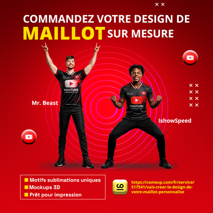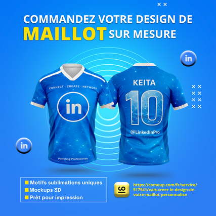 Je crée des maillots uniques, modernes et prêts à l’impression, pensés pour faire ressortir l’ADN de votre équipe.