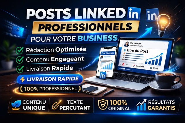 Je rédige pour vous des posts LinkedIn professionnels adaptés à votre activité.