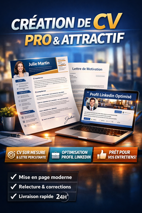 Je suis spécialisé(e) dans la création de CV modernes, professionnels et adaptés à votre objectif professionnel. Mon objectif est de vous aider à vous démarquer auprès des recruteurs et à obtenir des entretiens pour le poste que vous visez.