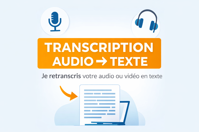 Vous avez un enregistrement à transformer en texte ? Je peux vous aider rapidement et avec sérieux. Je retranscris différents types d’audio ou de vidéos : interviews, podcasts, réunions, conférences, notes vocales ou vidéos YouTube.