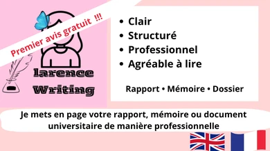 Proposé par Larence_Writing •Larence_Writing – Rédaction, correction et design de textes académiques FR/EN Vente au total 0