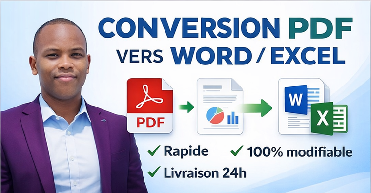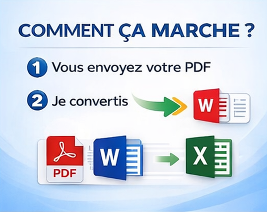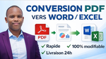 Je vous propose de convertir vos fichiers PDF en documents Word ou Excel parfaitement éditables, tout en respectant la mise en page, les tableaux et la structure du document.