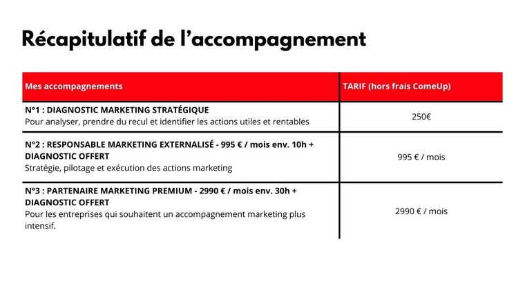 ## N°2 : RESPONSABLE MARKETING EXTERNALISÉ - 1 165,34 $US / mois env. 10/15h + DIAGNOSTIC OFFERT