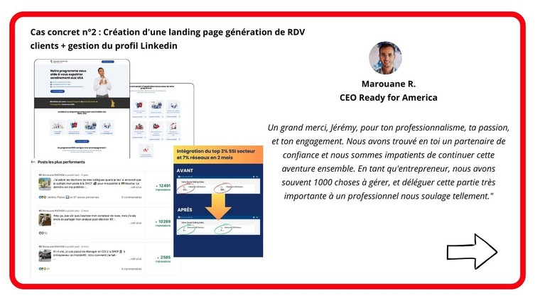 Vous pouvez d’ailleurs consulter les avis clients et mon protfolio présents sur mon profil ComeUp et sur mon LinkedIn pour découvrir les résultats obtenus sur différentes missions.