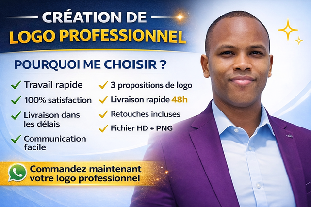 Je vous propose de créer un logo moderne, unique et adapté à votre image de marque. Un bon logo permet de renforcer la crédibilité de votre entreprise et d’attirer plus de clients.