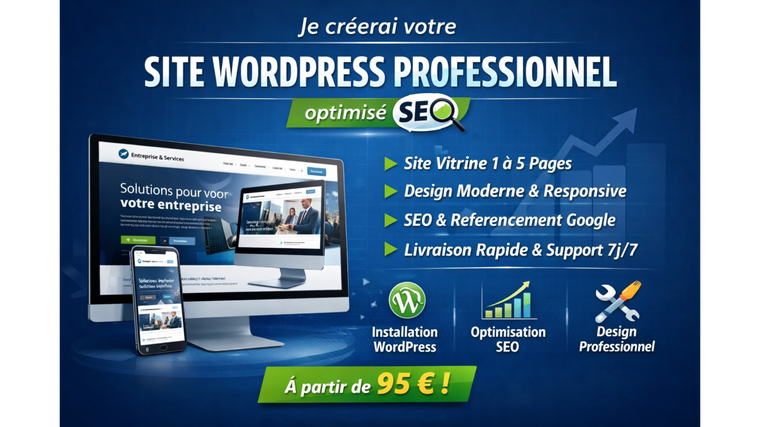 Avec ce service, vous obtenez un site professionnel clé en main, facile à gérer et évolutif pour ajouter des pages ou fonctionnalités ultérieurement. Que vous soyez une petite entreprise ou un artisan, je vous fournis un site WordPress performant, sécurisé et prêt à attirer vos clients.