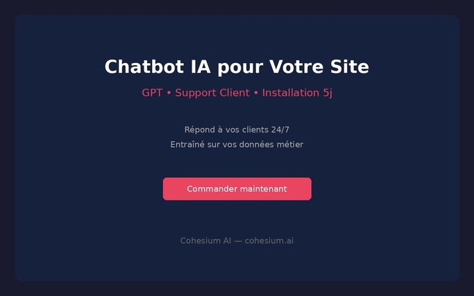 Stack moderne (OpenAI API ou Claude), base de connaissances vectorielle, widget JavaScript léger.