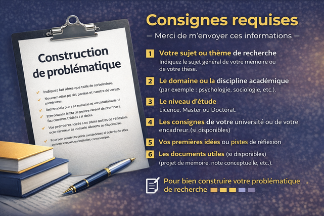 Je vais vous aider à construire une problématique solide pour votre mémoire ou thèse