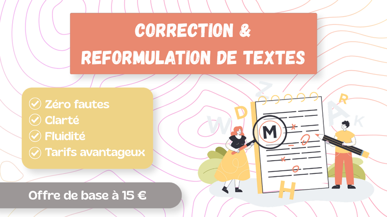Mon service de correction est là pour ça : pour vous permettre de présenter vos écrits dans leur meilleur jour, sans trahir leur sens, en préservant votre style et votre personnalité.