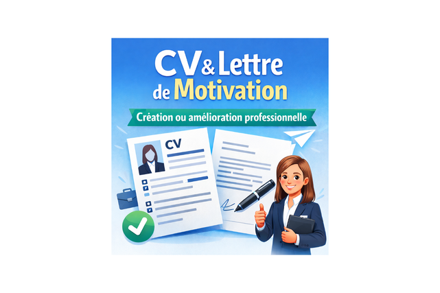 Proposé par LMservices •Création et amélioration de CV & lettres de motivation Vente au total 0