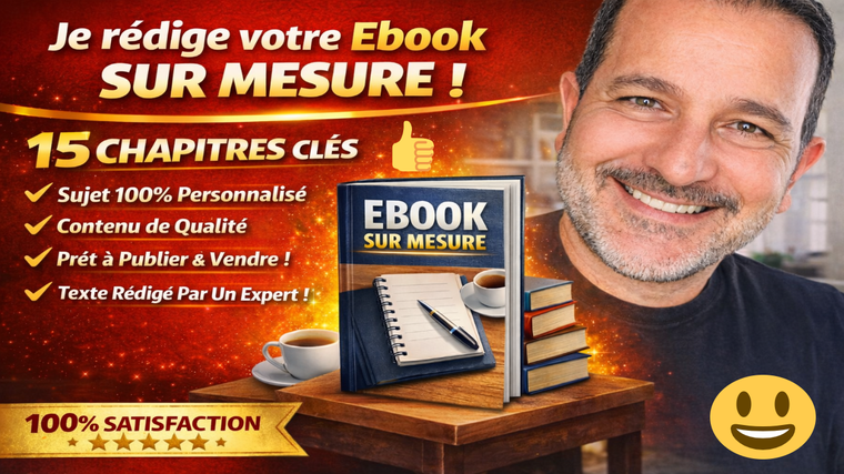 ✍️ Rédacteur d’Ebooks professionnels sur mesure Bienvenue sur mon profil. Je suis spécialisé dans la création et la rédaction d’ebooks professionnels, structurés et captivants, sur le sujet de votre choix. Aujourd’hui, les ebooks sont devenus l’un des meilleurs moyens de transmettre un savoir, développer une activité ou créer un produit digital rentable. Pourtant, écrire un ebook de qualité demande du temps, de la méthode et une vraie capacité rédactionnelle. C’est pourquoi je vous propose mes services pour transformer votre idée en un ebook clair, structuré et agréable à lire. 📚 Ce que je peux créer pour vous Je rédige des ebooks complets et professionnels, pensés pour : ✔ transmettre des connaissances ✔ créer un produit digital ✔ développer une activité en ligne ✔ lancer un projet éditorial ✔ partager une expertise ou une passion Chaque ebook est conçu avec une structure logique et une lecture fluide afin de captiver vos lecteurs du début jusqu’à la fin. 🧠 Mes domaines de rédaction Je peux écrire sur de nombreux thèmes comme par exemple : • développement personnel • bien-être et spiritualité • business et entrepreneuriat • marketing digital • psychologie et relations humaines • guides pratiques • coaching et motivation • santé et lifestyle Et bien sûr tout autre sujet que vous souhaitez développer. Chaque projet est personnalisé selon votre demande et vos objectifs. ⭐ Pourquoi travailler avec moi ? ✔ rédaction claire et professionnelle ✔ contenu structuré et agréable à lire ✔ ebook unique et personnalisé ✔ travail sérieux et soigné ✔ respect de vos idées et de votre projet Mon objectif est simple : vous livrer un ebook de qualité qui apporte une vraie valeur à vos lecteurs. 🚀 Mon objectif Vous aider à transformer vos idées en ebooks professionnels prêts à être utilisés, publiés ou vendus. Si vous avez un projet, une idée ou un sujet en tête, je serai ravi de vous accompagner dans sa réalisation. 💬 N’hésitez pas à me contacter avant de commander afin d’échanger sur votre projet.