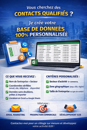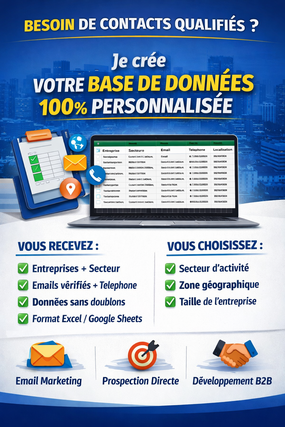 Je vais créer votre base de données prospects B2B ciblée, vérifiée et prête à l'envoi