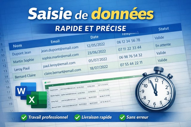 Je vais réaliser votre saisie de données avec rigueur et rapidité