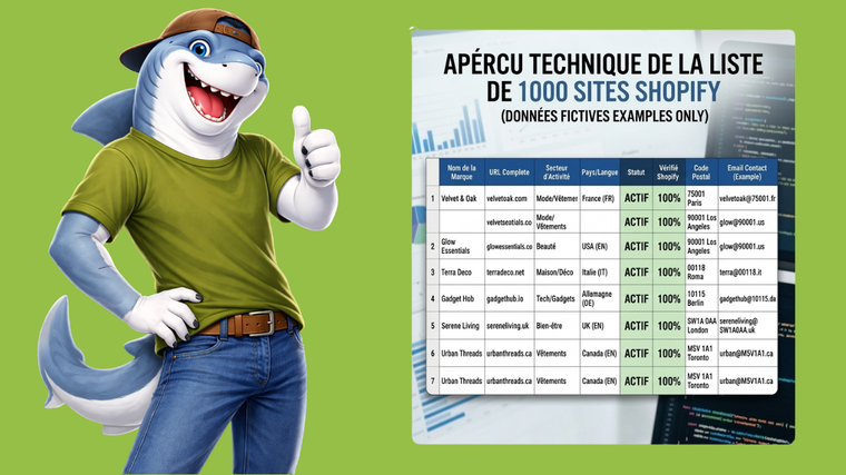 📋 Ce que contient votre liste de 1000 sites Shopify