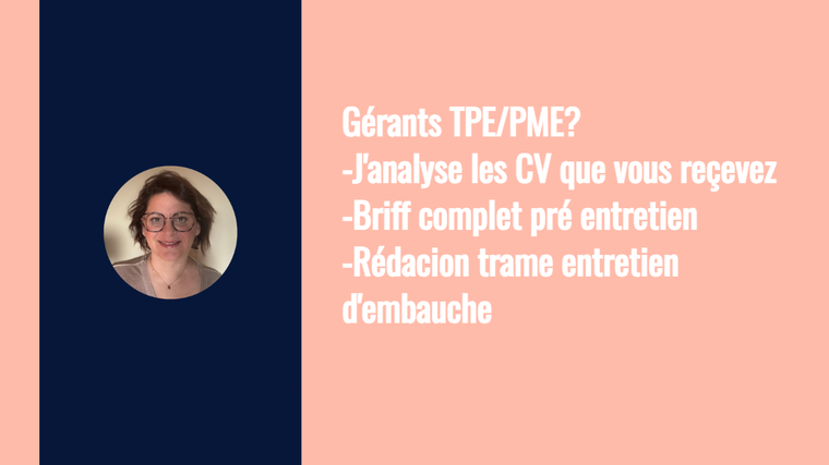 RECRUTEMENT TPE/PME-ACCOMPAGNEMENT OPERATIONNEL de 15 ans à accompagner des TPE/PME dans leurs recrutements et le mangement de leur équipe. J'aide les dirigeants à recruter efficacement et les candidats à valoriser leur parcours avec une approche concrète. Je vous adresse des livrables exploitables immédiatement. POUR LES GÉRANTS ET DIRIGEANTS SERVICE 1 - ANALYSE ET TRI DE CV Ce que je fais: Vous avez reçu 20, 30, 50 CV pour un poste et vous n'avez pas le temps de les lire. Je fais le tri pour vous. Livrable: Document Excel ou PDF contenant: Tableau comparatif des 5 meilleurs candidats (critères: expérience, formation, compétences, mobilité, prétentions salariales) Analyse détaillée par candidat (points forts, points de vigilance, cohérence du parcours) Questions d'entretien personnalisées pour chaque candidat Ma recommandation finale avec classement justifié Délai: 2 à 5 jours selon volume (10-30 CV: 2j | 31-50 CV: 3j | 50+ CV: 4j) Pourquoi ce service: Vous gagnez 5 à 10 heures de lecture et vous recevez directement les candidats pertinents avec les bonnes questions à leur poser. SERVICE 2 - RÉDACTION DE FICHES DE POSTE Ce que je fais: Je rédige vos fiches de poste pour attirer les bons candidats et éviter les CV hors-sujet. Livrable: Fiche de poste complète au format Word et PDF (missions, profil recherché, conditions, process de recrutement) Version annonce optimisée pour LinkedIn Version annonce optimisée pour Indeed ou Pôle Emploi Grille d'évaluation candidats (10 critères à scorer en entretien) Délai: 2 à 6 jours selon nombre de fiches (1 fiche: 2j | 3 fiches: 4j | 5 fiches: 6j) Pourquoi ce service: Une fiche de poste claire = candidatures qualifiées. Vous économisez du temps de tri et vous attirez des profils qui correspondent vraiment à votre besoin. SERVICE 3 - AUDIT DE VOTRE PROCESSUS DE RECRUTEMENT Ce que je fais: J'analyse votre façon actuelle de recruter (annonces, canaux de diffusion, tri des CV, entretiens, intégration) et je vous donne un plan d'action pour améliorer vos résultats. Livrable: Document PDF de 8 à 12 pages contenant: Diagnostic de votre process actuel (ce qui fonctionne, ce qui bloque) 5 recommandations concrètes chiffrées (exemple: "Publier sur Indeed en plus de LeBonCoin = +40% de candidatures qualifiées") Plan d'action sur 3 mois (étapes, priorités, ressources nécessaires) 30 minutes d'échange téléphonique pour répondre à vos questions Délai: 3 jours Pourquoi ce service: Recruter coûte cher quand on se trompe (15 000€ en moyenne pour une TPE). Investir 97€ dans un audit = économiser des erreurs qui coûtent 100 fois plus. POUR LES CANDIDATS EN RECHERCHE D'EMPLOI SERVICE 4 - RÉDACTION DE CV PROFESSIONNEL Ce que je fais: Je rédige votre CV pour mettre en valeur votre parcours et vos compétences de façon claire et professionnelle. Livrable: CV complet au format Word et PDF (mise en page moderne et sobre, 1 à 2 pages selon profil) Reformulation complète de votre contenu (descriptions postes, missions, réalisations) Optimisation avec mots-clés de votre secteur (pour passer filtres automatiques recruteurs) Document séparé "Axes forts à mettre en avant en entretien" (3 à 5 points clés à valoriser oralement) Mes recommandations sur l'explication factuelle des trous dans votre CV (si périodes sans emploi) Formules disponibles CV seul: délai 2 jours **CV + lettre de motivation personnalisée: délai 3 jour Pourquoi ce service: Un CV bien rédigé = plus de réponses positives. Je connais ce que les recruteurs cherchent (je suis recruteuse depuis 15 ans) et je sais comment présenter votre parcours pour qu'il soit lu et retenu. MA MÉTHODE DE TRAVAIL Échange initial Vous m'expliquez votre besoin précis (par message Comeup) Envoi des éléments Vous m'envoyez les documents nécessaires (CV reçus, informations entreprise, votre CV actuel selon le service). Travail personnalisé Je travaille sur votre dossier de façon 100% personnalisée. Pas de templates génériques. Chaque livrable est adapté à votre situation réelle. Livraison Vous recevez vos documents aux formats exploitables dans les délais annoncés. Ajustements si besoin Une révision mineure incluse si besoin d'ajustement après livraison. ** POURQUOI TRAVAILLER AVEC MOI** Expérience terrain:+ de 15 ans en TPE/PME (commerce, services, artisanat, hotellerie-restauration). Je ne suis aucunement RH, mais chasseur de tête et révélatrice de talents. Je connais vos réalités: budgets , besoin de résultats et surtout des bonnes personnes qui tiendront dans le temps et auront envie Approche concrète: Zéro jargon RH corporate. Documents prêts à l'emploi, pas de rapport théorique de 50 pages. Réactivité: Réponse sous 24h. Délais de livraison respectés. Au plaisir de collaborer avec vous,