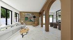 - Modélisation 3D du salon avec mobilier, couleurs et matériaux adaptés.