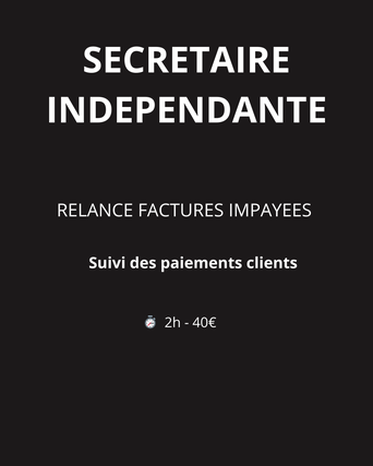 Secrétaire indépendante, je vous propose de gérer le suivi de vos paiements clients et les relances de vos factures.