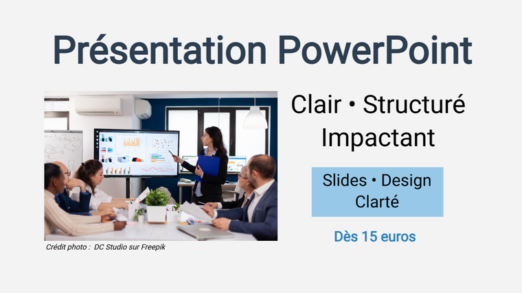 Je vais créer ou améliorer vos présentations PowerPoint de manière claire et professionnelle