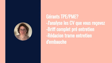 RECRUTEMENT TPE/PME-ACCOMPAGNEMENT OPERATIONNEL de 15 ans à accompagner des TPE/PME dans leurs recrutements et le mangement de leur équipe. J'aide les dirigeants à recruter efficacement et les candidats à valoriser leur parcours avec une approche concrète. Je vous adresse des livrables exploitables immédiatement. POUR LES GÉRANTS ET DIRIGEANTS SERVICE 1 - ANALYSE ET TRI DE CV Ce que je fais: Vous avez reçu 20, 30, 50 CV pour un poste et vous n'avez pas le temps de les lire. Je fais le tri pour vous. Livrable: Document Excel ou PDF contenant: Tableau comparatif des 5 meilleurs candidats (critères: expérience, formation, compétences, mobilité, prétentions salariales) Analyse détaillée par candidat (points forts, points de vigilance, cohérence du parcours) Questions d'entretien personnalisées pour chaque candidat Ma recommandation finale avec classement justifié Délai: 2 à 5 jours selon volume (10-30 CV: 2j | 31-50 CV: 3j | 50+ CV: 4j) Pourquoi ce service: Vous gagnez 5 à 10 heures de lecture et vous recevez directement les candidats pertinents avec les bonnes questions à leur poser. SERVICE 2 - RÉDACTION DE FICHES DE POSTE Ce que je fais: Je rédige vos fiches de poste pour attirer les bons candidats et éviter les CV hors-sujet. Livrable: Fiche de poste complète au format Word et PDF (missions, profil recherché, conditions, process de recrutement) Version annonce optimisée pour LinkedIn Version annonce optimisée pour Indeed ou Pôle Emploi Grille d'évaluation candidats (10 critères à scorer en entretien) Délai: 2 à 6 jours selon nombre de fiches (1 fiche: 2j | 3 fiches: 4j | 5 fiches: 6j) Pourquoi ce service: Une fiche de poste claire = candidatures qualifiées. Vous économisez du temps de tri et vous attirez des profils qui correspondent vraiment à votre besoin. SERVICE 3 - AUDIT DE VOTRE PROCESSUS DE RECRUTEMENT Ce que je fais: J'analyse votre façon actuelle de recruter (annonces, canaux de diffusion, tri des CV, entretiens, intégration) et je vous donne un plan d'action pour améliorer vos résultats. Livrable: Document PDF de 8 à 12 pages contenant: Diagnostic de votre process actuel (ce qui fonctionne, ce qui bloque) 5 recommandations concrètes chiffrées (exemple: "Publier sur Indeed en plus de LeBonCoin = +40% de candidatures qualifiées") Plan d'action sur 3 mois (étapes, priorités, ressources nécessaires) 30 minutes d'échange téléphonique pour répondre à vos questions Délai: 3 jours Pourquoi ce service: Recruter coûte cher quand on se trompe (15 000€ en moyenne pour une TPE). Investir 97€ dans un audit = économiser des erreurs qui coûtent 100 fois plus. POUR LES CANDIDATS EN RECHERCHE D'EMPLOI SERVICE 4 - RÉDACTION DE CV PROFESSIONNEL Ce que je fais: Je rédige votre CV pour mettre en valeur votre parcours et vos compétences de façon claire et professionnelle. Livrable: CV complet au format Word et PDF (mise en page moderne et sobre, 1 à 2 pages selon profil) Reformulation complète de votre contenu (descriptions postes, missions, réalisations) Optimisation avec mots-clés de votre secteur (pour passer filtres automatiques recruteurs) Document séparé "Axes forts à mettre en avant en entretien" (3 à 5 points clés à valoriser oralement) Mes recommandations sur l'explication factuelle des trous dans votre CV (si périodes sans emploi) Formules disponibles CV seul: délai 2 jours **CV + lettre de motivation personnalisée: délai 3 jour Pourquoi ce service: Un CV bien rédigé = plus de réponses positives. Je connais ce que les recruteurs cherchent (je suis recruteuse depuis 15 ans) et je sais comment présenter votre parcours pour qu'il soit lu et retenu. MA MÉTHODE DE TRAVAIL Échange initial Vous m'expliquez votre besoin précis (par message Comeup) Envoi des éléments Vous m'envoyez les documents nécessaires (CV reçus, informations entreprise, votre CV actuel selon le service). Travail personnalisé Je travaille sur votre dossier de façon 100% personnalisée. Pas de templates génériques. Chaque livrable est adapté à votre situation réelle. Livraison Vous recevez vos documents aux formats exploitables dans les délais annoncés. Ajustements si besoin Une révision mineure incluse si besoin d'ajustement après livraison. ** POURQUOI TRAVAILLER AVEC MOI** Expérience terrain:+ de 15 ans en TPE/PME (commerce, services, artisanat, hotellerie-restauration). Je ne suis aucunement RH, mais chasseur de tête et révélatrice de talents. Je connais vos réalités: budgets , besoin de résultats et surtout des bonnes personnes qui tiendront dans le temps et auront envie Approche concrète: Zéro jargon RH corporate. Documents prêts à l'emploi, pas de rapport théorique de 50 pages. Réactivité: Réponse sous 24h. Délais de livraison respectés. Au plaisir de collaborer avec vous,