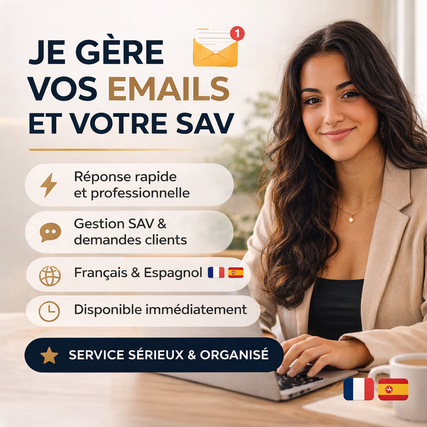 Bonjour, Je suis assistante administrative bilingue français / espagnol, je propose des services simples et efficaces pour vous faire gagner du temps. Je peux vous aider sur : gestion des emails clients support client (chat / SAV) suivi des commandes saisie de données tâches administratives simples Je suis sérieuse, organisée et réactive, je suis disponible rapidement, y compris en soirée. N'hésitez pas à me contacter pour discuter de vos besoins.