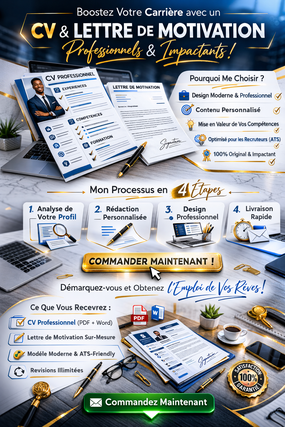 Je vais je redige votre cv moderne et votre lettre de motivation personnalisé pour booster votre candidature