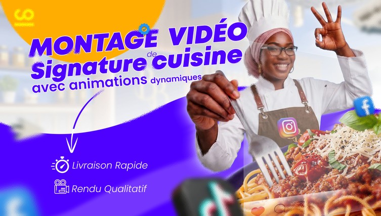 Je vais créer votre vidéo cuisine signature avec animations dynamiques