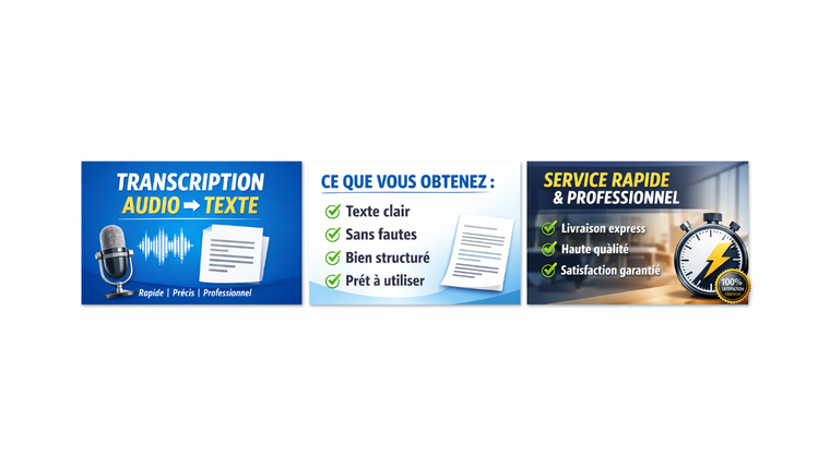 Je vous propose un service de transcription audio fiable, rapide et soignée, adapté à vos besoins.