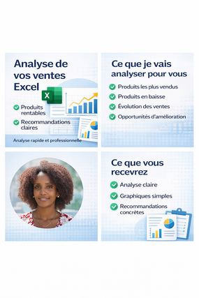 Grâce à mon expérience en analyse commerciale et en gestion des opérations, je peux vous aider à transformer vos données en informations utiles pour votre activité.