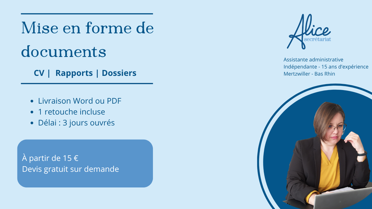 Proposé par AliceSecretariat67 •Alice Secrétariat Professionnel Vente au total 0