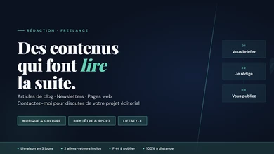 Je rédige vos articles de blog, newsletters et contenus web — et corrige vos textes existants. Spécialisé en musique, culture, bien-être et sport. Rédacteur actif (blog musical depuis 12 ans), ancien formateur : je travaille avec rigueur, dans votre ton, dans les délais. Prêt à publier, sans mauvaise surprise.