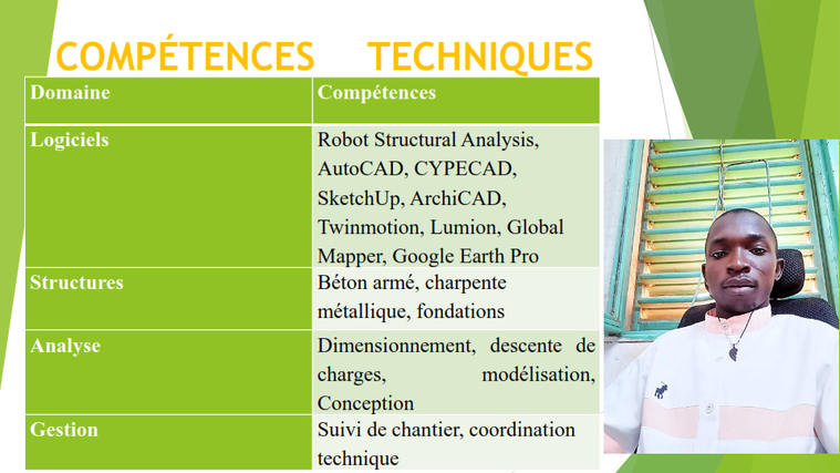 Ingénieur en génie civil spécialisé en calcul et dimensionnement des structures en béton armé et métallique. Je vous accompagne dans la conception et la réalisation de vos projets de bâtiment, en garantissant des solutions fiables, optimisées et conformes aux normes. 🔹 Mes compétences : Dimensionnement de structures (R+1 à R+5) Plans de coffrage et ferraillage Modélisation sur CYPECAD et Robot Structural Analysis Descente de charges Métré et devis quantitatif 🔹 Pourquoi me faire confiance ? Expérience en bureau d’étude Maîtrise des logiciels professionnels Travail rigoureux et respect des délais Je reste disponible pour discuter de votre projet et vous proposer une solution adaptée.
