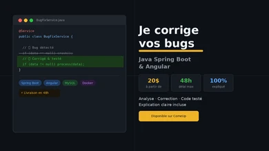 Proposé par FernandoDJOKI •Développeur Fullstack Angular / Spring Boot — API REST, WebSocket, Docker Vente au total 0