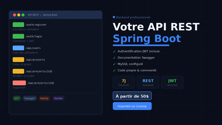 Je développe des APIs REST professionnelles avec Spring Boot,