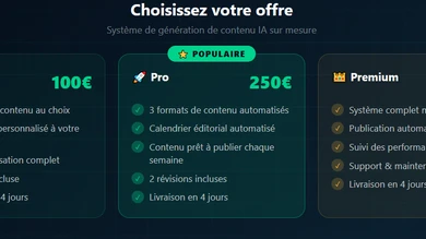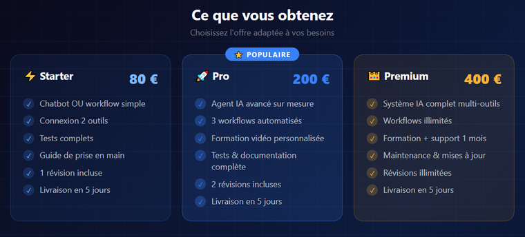 Offre Pro (234,18 $US) — Agent IA avancé + 3 workflows + formation vidéo personnalisée