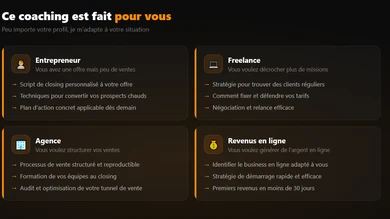 Proposé par Helios_Pro •Expert Closing, Coaching Business & Automatisation IA Vente au total 0