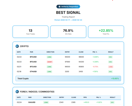 Développeur spécialisé dans l'écosystème TelegramSub, j'accompagne les traders et les fournisseurs de signaux dans l'automatisation complète de leur activité. Mon objectif : supprimer vos tâches manuelles pour vous concentrer uniquement sur votre trading.