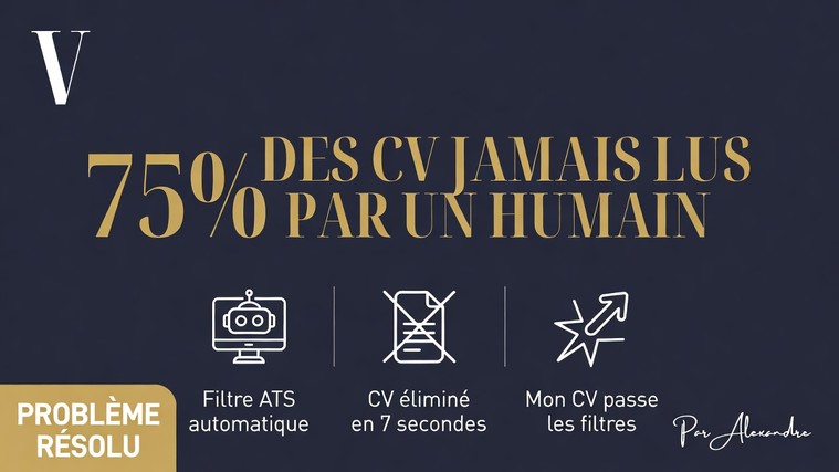 Plus de 75% des candidatures sont éliminées par des logiciels de tri automatique (ATS) avant même d'être lues par un être humain. Et parmi ceux qui passent ce premier filtre, la majorité des CV sont écartés en moins de 7 secondes faute de clarté, de structure et d'impact.