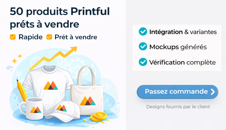 Je vais créer et configure 50 produits Printful prêts à être vendus sur Shopify