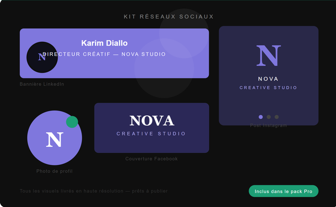 Je suis spécialisé dans la création d’identités visuelles professionnelles. Avec ce service, je vous aide à donner une image forte et cohérente à votre marque, qu’il s’agisse d’un projet personnel, d’une startup ou d’une entreprise.