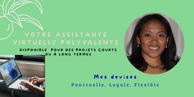 Vous cherchez une assistante virtuelle fiable, proactive et réellement efficace? Vous venez de trouvez la bonne personne.
