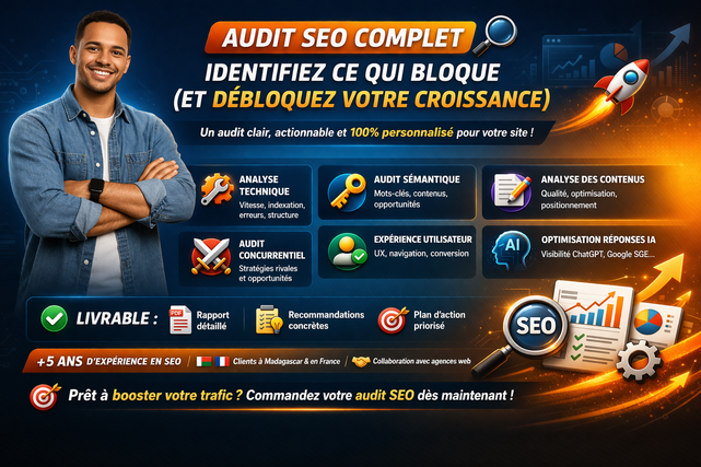 Proposé par Mahatoky25 •Safidy - Consultant SEO et GEO freelance Vente au total 0