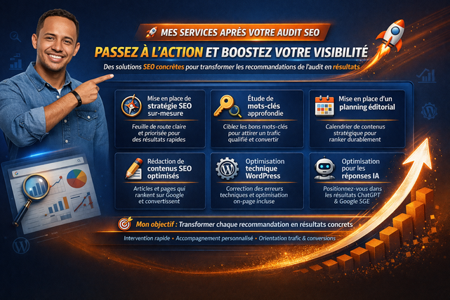 Mon objectif est simple : vous aider à mieux comprendre pourquoi votre site ne performe pas autant qu’il le pourrait, puis vous donner une feuille de route concrète pour gagner en visibilité sur Google .