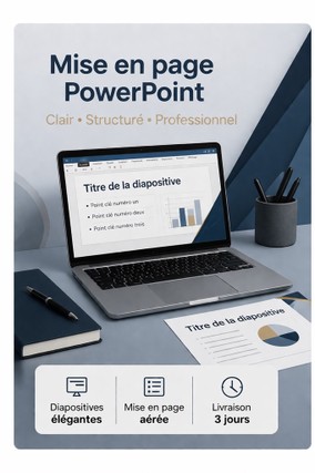 J’améliore la mise en page de votre présentation PowerPoint jusqu’à 5 slides maximum.