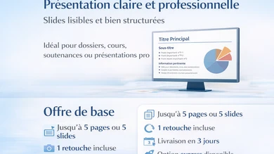 Ce service est idéal si vous avez déjà le contenu de votre présentation, mais que vous souhaitez un rendu visuel plus soigné et mieux structuré.
