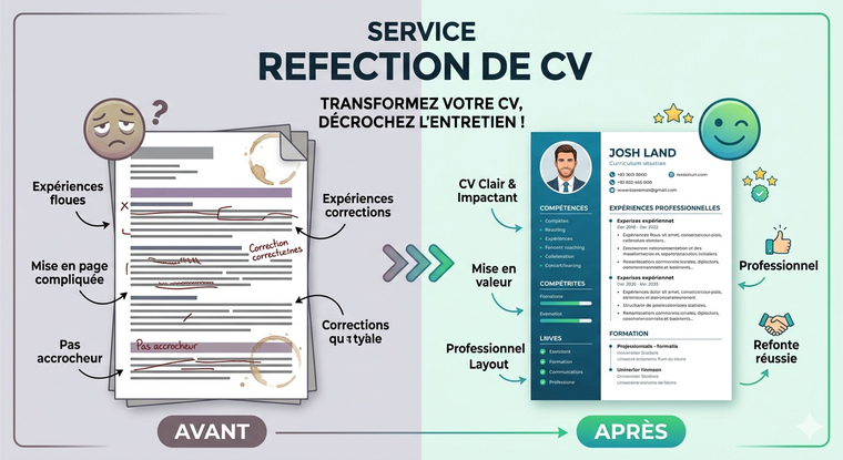Vous avez les compétences, mais votre CV ne vous rend pas justice ? Un document mal organisé ou trop chargé peut freiner votre recherche d'emploi. Fort de mon expérience en optimisation de profils polyvalents, je vous aide à transformer votre parcours en un véritable outil de conviction.