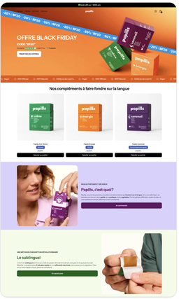 Stratégie de conversion — structure des pages, hiérarchie visuelle, boutons d'action, tunnel d'achat : tout est optimisé pour transformer vos visiteurs en acheteurs.