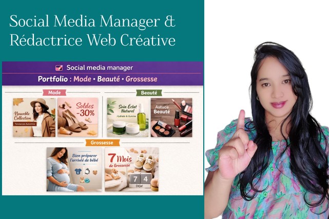 Bonjour ! Je suis une créateice de contenu passionnée et gestionnaire de réseaux sociaux avec une solide expérience dans la niche de la puériculture et du e-commerce. Ayant moi-même crée et développé des communautés actives sur facebook,je maîtrise l'art d'engager une audience et de transformer des abonnés en clients.Je vous accompagne dans la rédaction de vos contenus, la gestion de vos pages et la création de visuels percutants sur canva. Mon objectif :vous aider à gagner en visibilité et en crédibilité grâce à un contenu de qualité N'hésitez pas à me contacter pour discuter de vos projets !